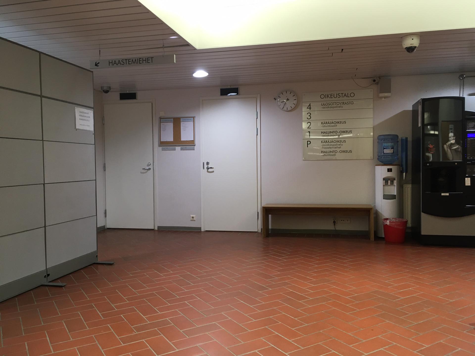 Käräjäoikeuden asiakaspalvelu 3. kerroksessa (käynti vain hissillä).